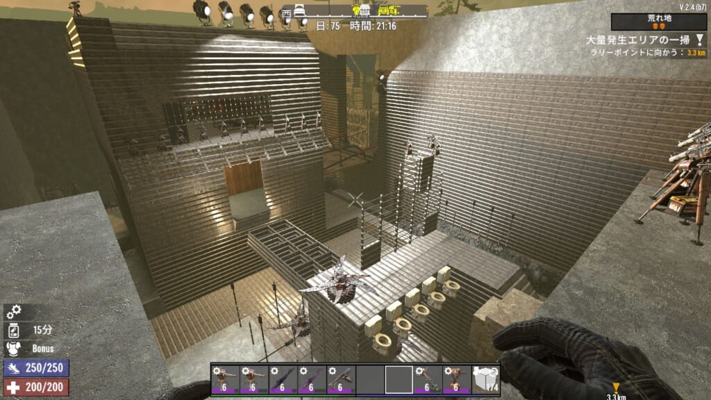 最後のゾンビラッシュ決戦の場。まー広いんですわココ。安地はあるかもですが、肉弾戦でもまあなんとかなります。