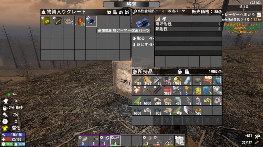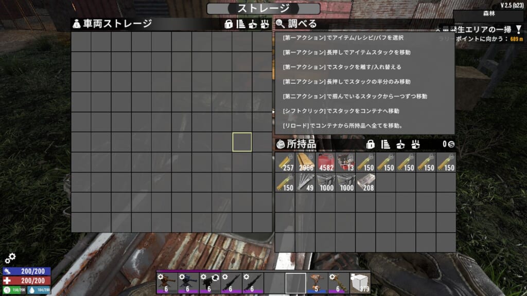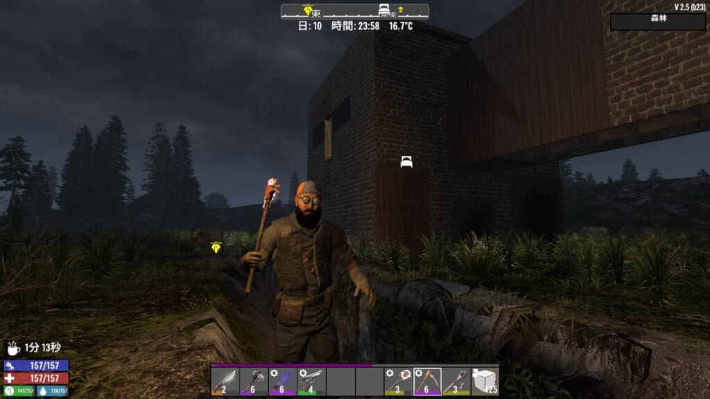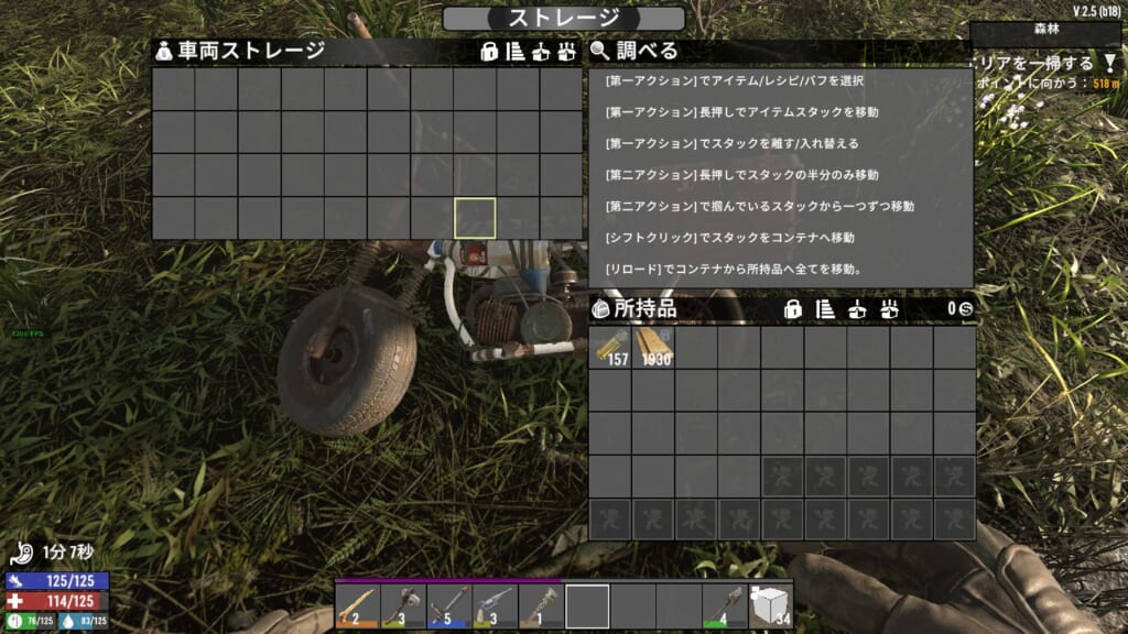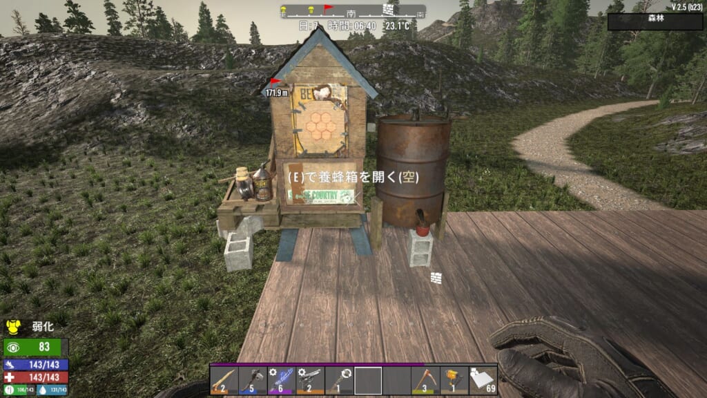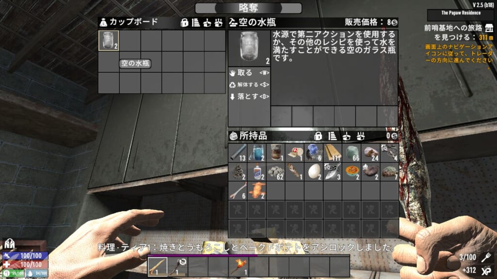 水たまりで空瓶を使うと泥水が直接入手可能になったので、水の確保は比較的しやすくなった感があります。