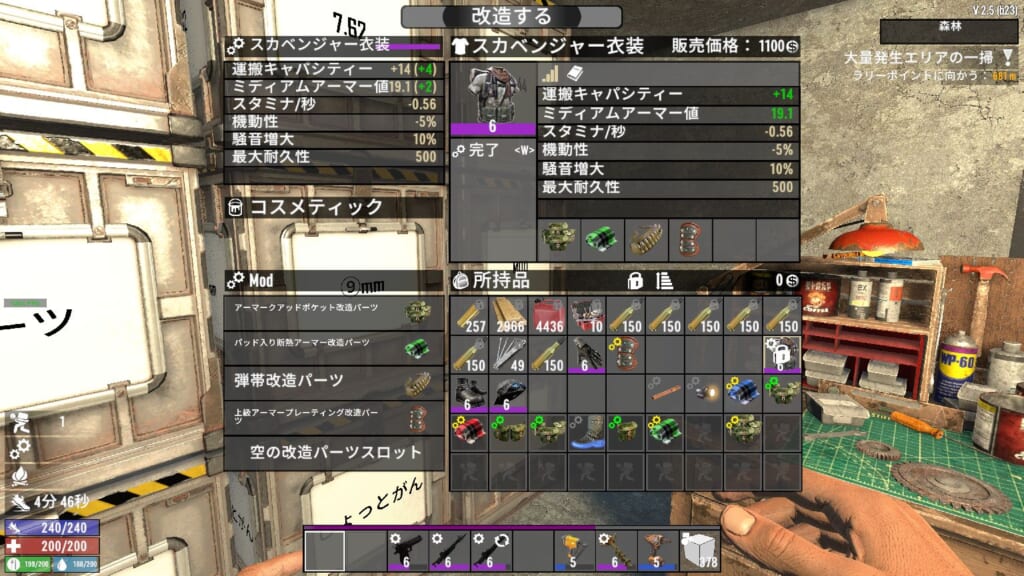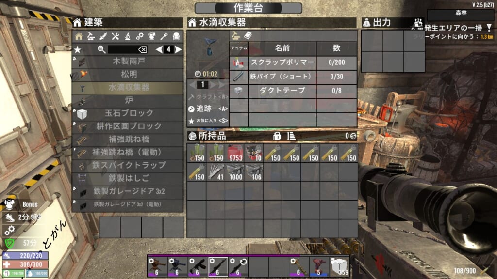 Ver2.4に比べて必要素材が2倍ぐらいになっています。スクラップポリマー200+ダクトテープ8+鉄パイプを要求してきます。