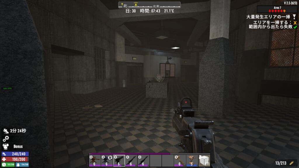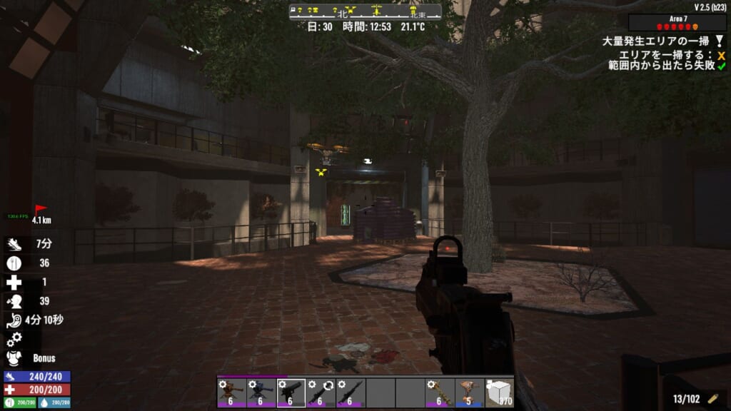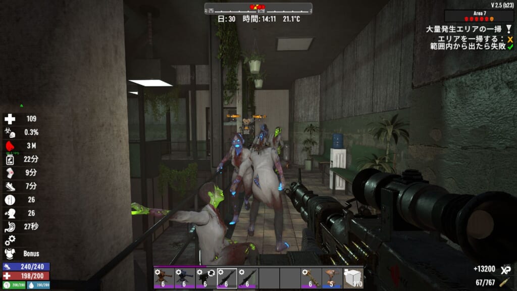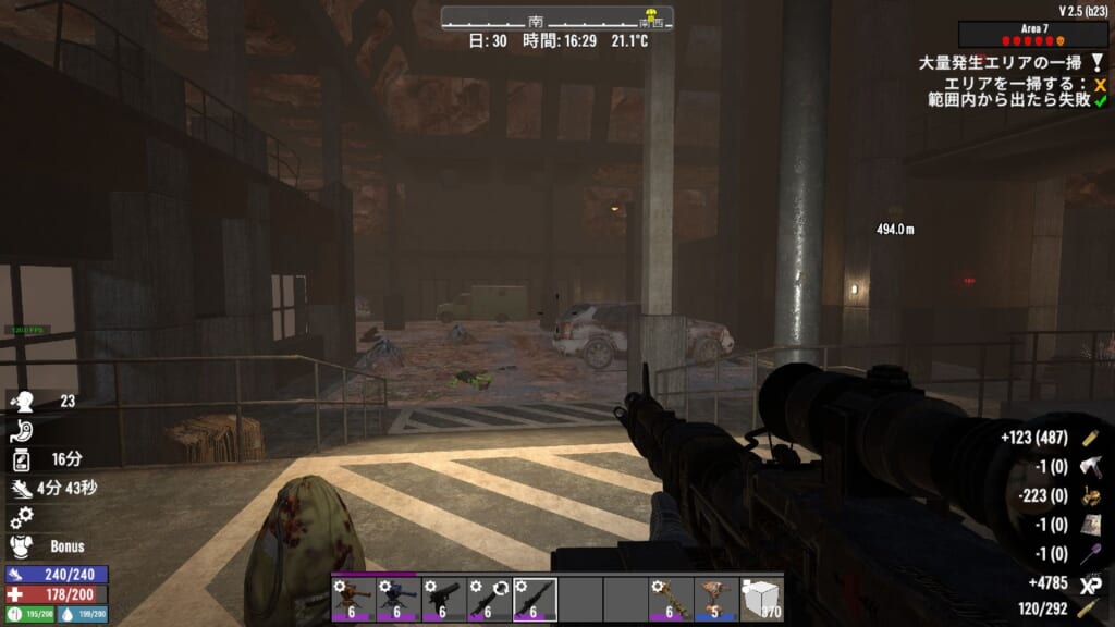 ゾンビラッシュ完了!と思ったけどまだエリア一掃できておらず。くまなく探したら1エリアをスルーしていました。普通にルート通りに進んだと思っていても結構見落としがあります。中央広場から階段を全部上ると良きです。