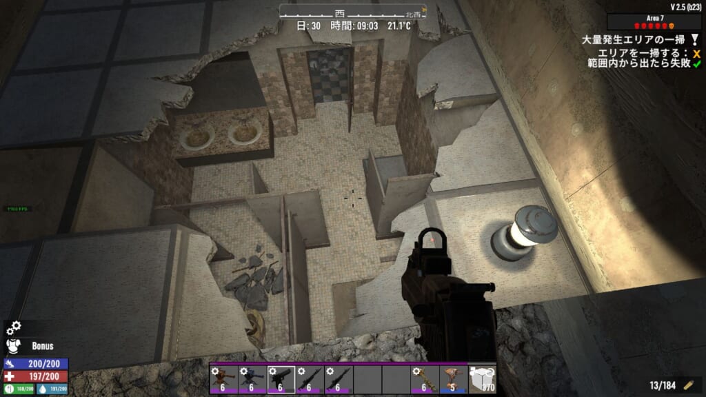 湧いたゾンビが壁に挟まったりしてどこにいるのかパッとわからなかったりします。だいたい、天井裏で一生懸命壁を殴っていたりします。
