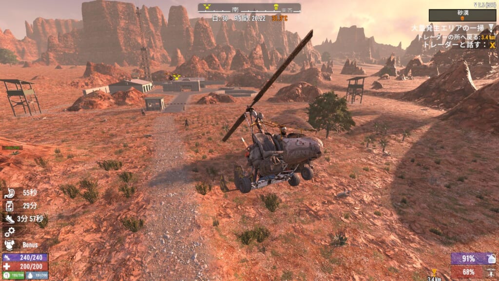これはかなり楽ちんな仕様となりました。結構な頻度で嵐に遭遇すること自体は変わりなくて、ミッション中に雲行きが怪しくなって嵐発生、というパターンは変わらないのですが。