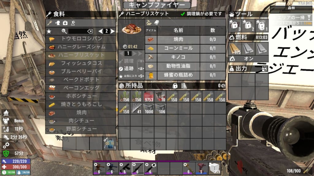 体感でそこまでプレイに支障が出る感じではありませんけど、隠密縛りプレイをしている際は、食料の摂取タイミングなど気をつける必要がありそうです。